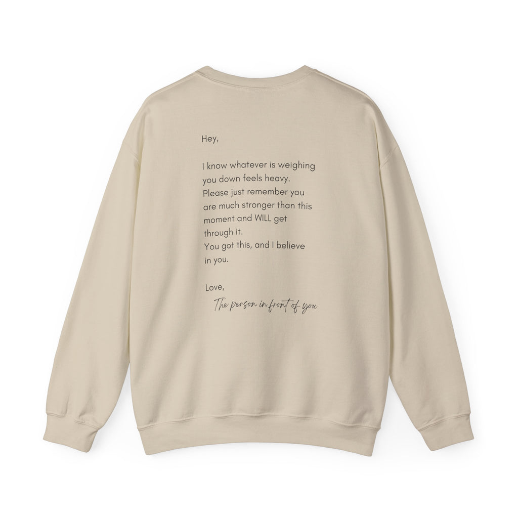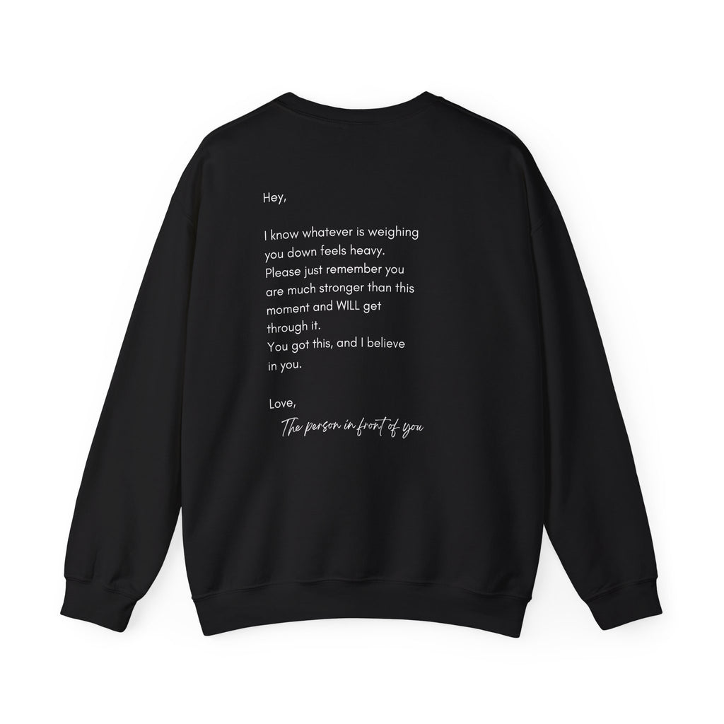 I know whatever is weighing you down feels heavy. Please just remember you are much stronger than this moment and WILL get through it, You got this, and I believe in you.